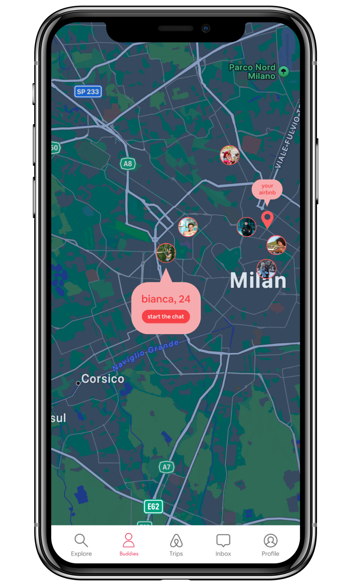 Airbnb guests who want to connect with other travelers join the “buddies” feature of the Airbnb app. Users will explore the various activties and options the area has to offer and choose which one they want a buddy to experience it with.